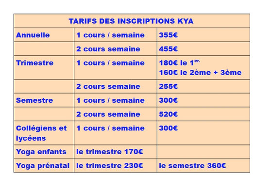 TARIFS DES COURS COLLECTIFS 2025 - 2026